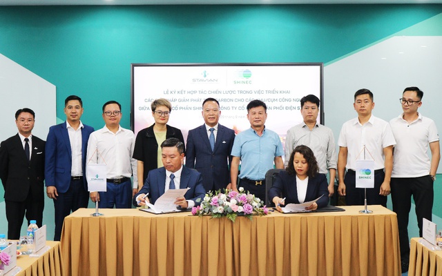 Ngày 29/09/2025 tại Hà Nội, Lễ ký kết hợp tác chiến lược trong việc triển khai các giải pháp giảm phát thải carbon cho các khu/cụm công nghiệp giữa Công ty Cổ phần Phân phối Điện Stavian (Stavian ED) và Công ty Cổ phần Shinec đã chính thức diễn ra, mở ra một chương mới trong định hướng phát triển công nghiệp xanh tại Việt Nam. Theo phạm vi của thỏa thuận hợp tác, Stavian ED - với kinh nghiệm và chuyên môn trong lĩnh vực năng lượng tái tạo, giải pháp tiết kiệm năng lượng và hạ tầng điện - sẽ cùng Shinec - đơn vị tiên phong trong phát triển các khu công nghiệp theo mô hình xanh, sinh thái – triển khai các giải pháp tiên tiến tại Cụm công nghiệp Đầm Hà (tỉnh Quảng Ninh), bao gồm: hệ thống điện mặt trời áp mái, hệ thống lưu trữ năng lượng "BESS FARM" - thiết bị do Công ty Cổ phần Giải pháp Năng lượng Stavian sản xuất, hệ thống chiếu sáng công cộng bằng năng lượng mặt trời, cung cấp điện xanh qua cơ chế DPPA và giải pháp chuyển đổi năng lượng thông qua hệ thống cung cấp khí hóa lỏng (LNG) được đầu tư bởi Công ty Cổ phần Khí Stavian. Đây không chỉ là bước đi tiên phong về ứng dụng năng lượng sạch trong các khu công nghiệp, mà còn góp phần tạo ra nền tảng vững chắc cho các nhà đầu tư, doanh nghiệp sản xuất gắn liền với tiêu chuẩn phát triển bền vững toàn cầu, đạt chứng chỉ "LEED GOLD" trong lĩnh vực sản xuất.