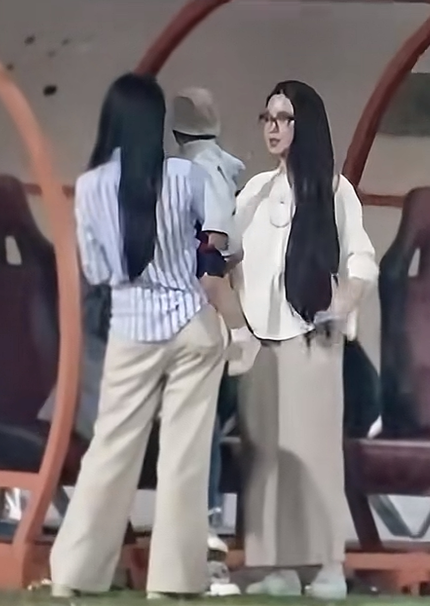 Thái độ của Doãn Hải My và Chu Thanh Huyền khi gặp nhau ở sân vận động.