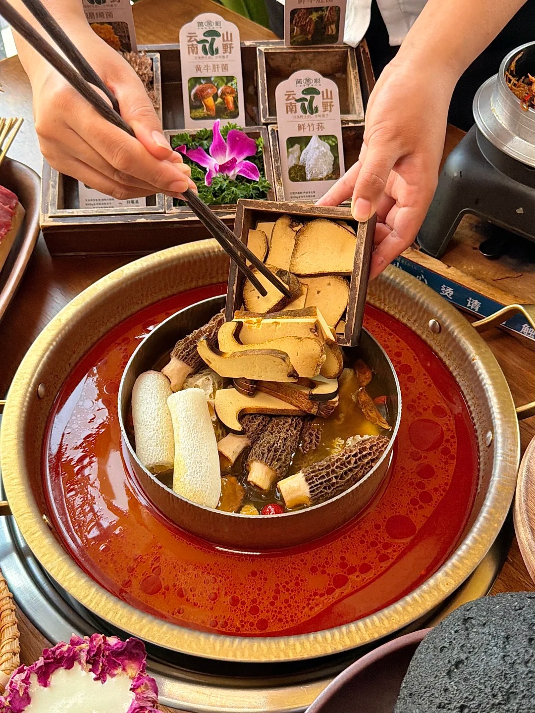 Nếu phải tìm một món ăn mang tính biểu tượng, đại diện cho tinh hoa đất trời Vân Nam thì chắc chắn lẩu nấm hoang dã sẽ giữ vị trí độc tôn. Giống như người Việt Nam luôn thèm cảm giác quây quần bên nồi lẩu gà lá é hay lẩu nấm tràm giữa tiết trời mù sương, người dân bản địa nơi đây cũng gửi gắm tình yêu quê hương vào những nồi lẩu nghi ngút khói.