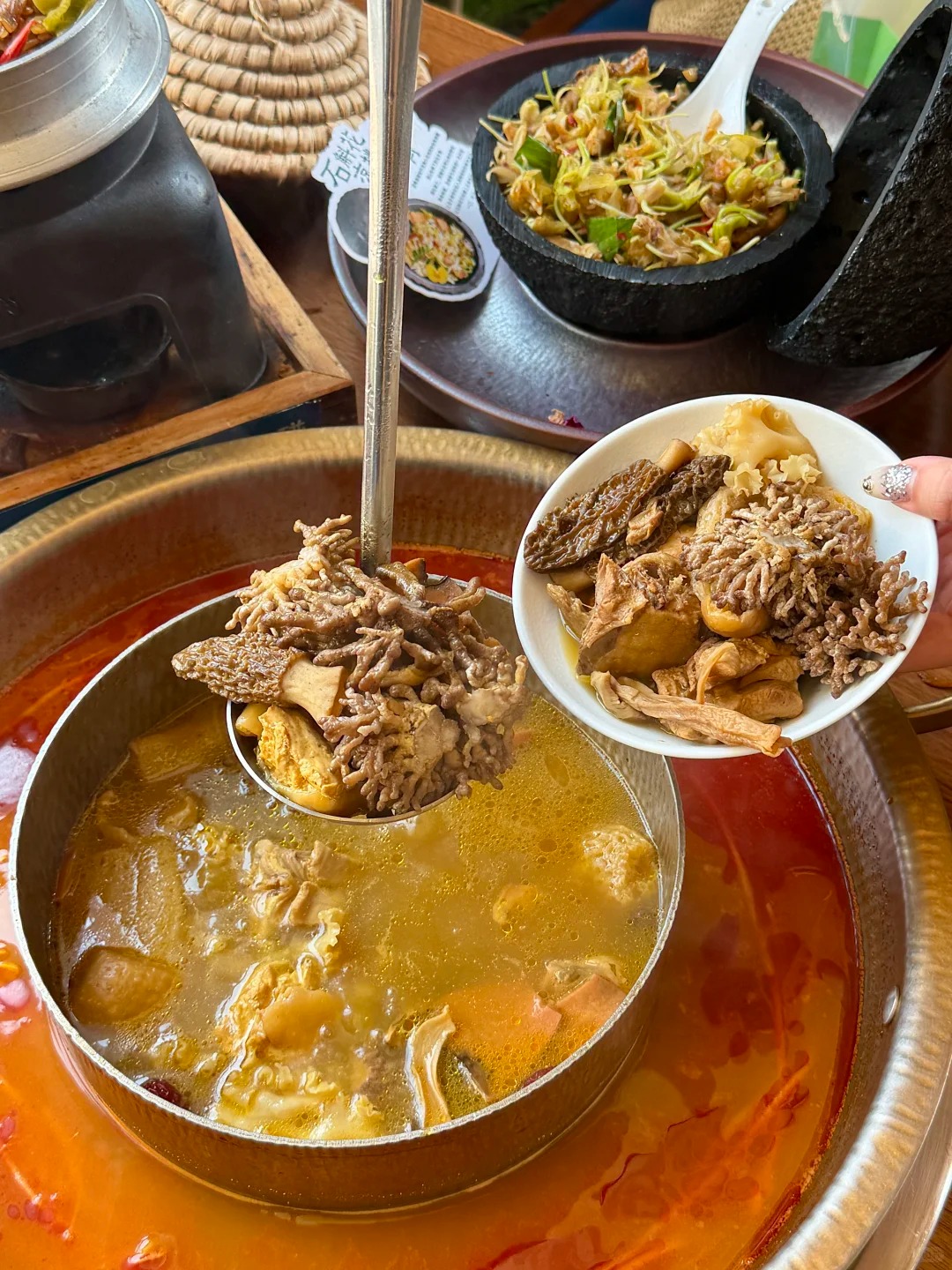 Lẩu nấm hoang dã: Linh hồn núi rừng đun trong nồi cốt gà thanh khiết