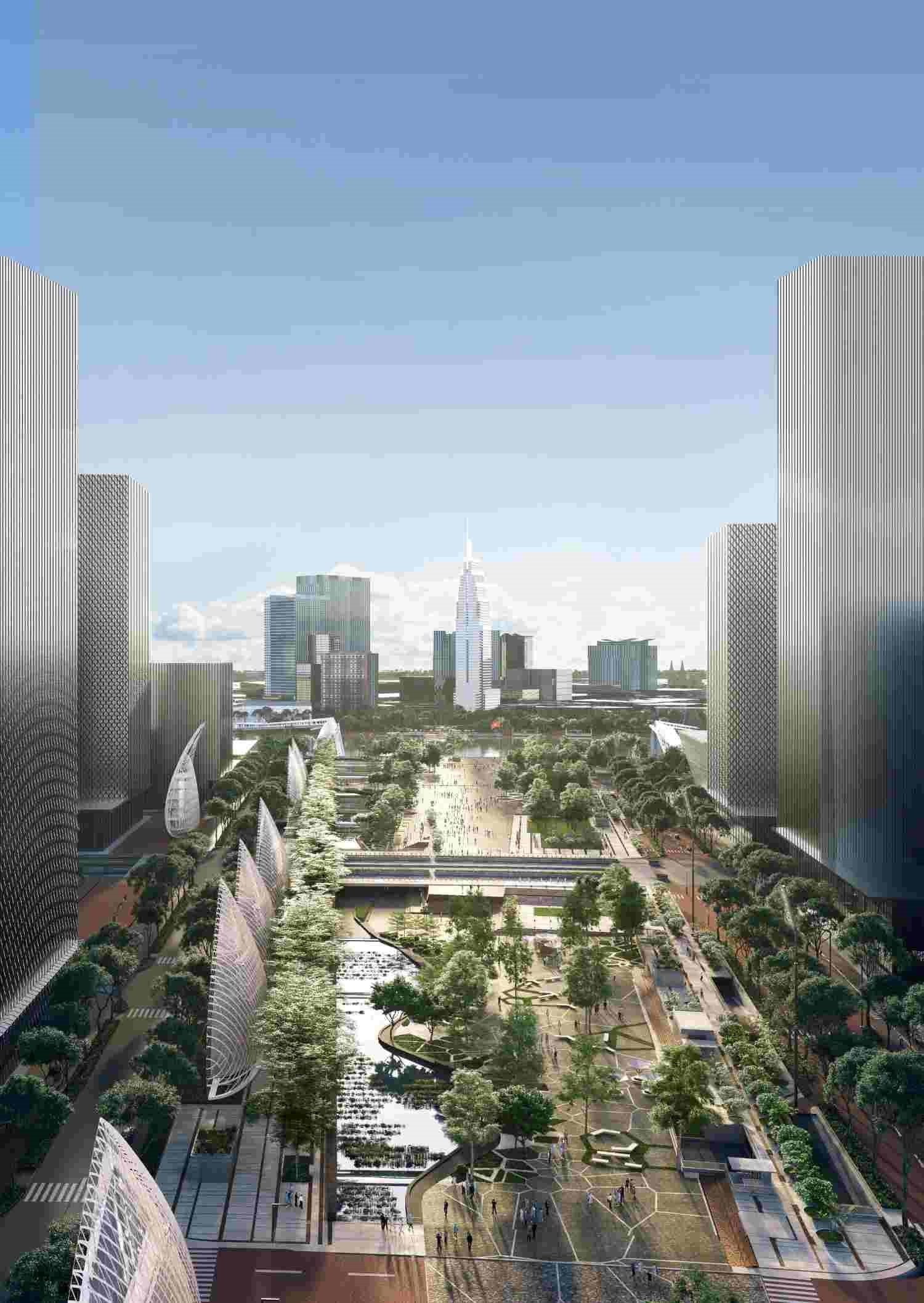 Phối cảnh của dự án Quảng trường Trung tâm và Trung tâm Hành chính thành phố tại lõi Khu đô thị mới Thủ Thiêm. (Ảnh: Nhà đầu tư)
