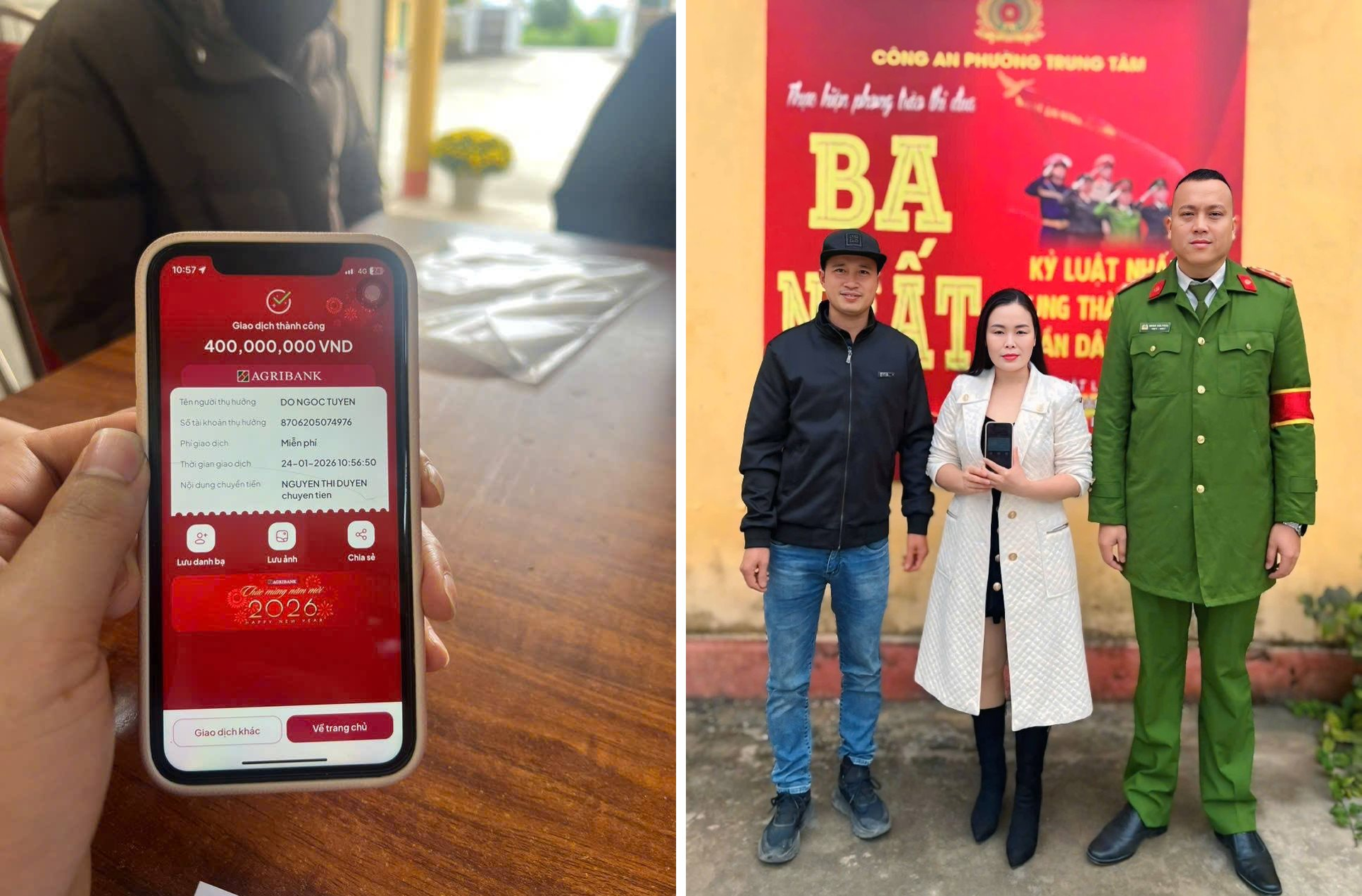Theo Công an tỉnh Lào Cai, vào hồi 16h58 ngày 23/1, chị Nguyễn Thị Duyên, (SN 1978, cư trú tại tổ 11, phường Trung Tâm) bất ngờ nhận được số tiền 400 triệu đồng chuyển vào tài khoản ngân hàng cá nhân.