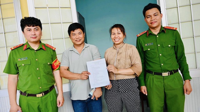 Nhận lại tiền, anh Dinh đã cảm ơn các đồng chí Công an xã đã hỗ trợ để anh nhận lại được tài sản của mình, đồng thời cảm ơn sự hợp tác của chịà Thuỷ.