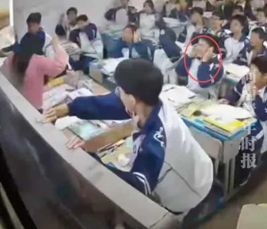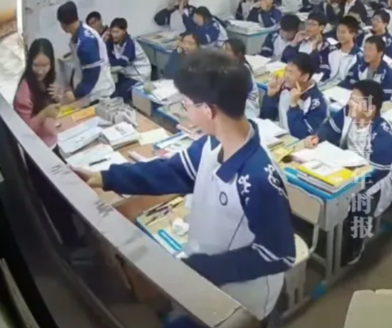 Đoạn video ngắn trích từ camera trong một lớp học Giang Tây ở từ tận 4 năm trước bất ngờ được chia sẻ lại và gây viral khắp các trang mạng xã hội Trung Quốc. Đoạn video không có kỹ xảo, không nhạc nền, chỉ có âm thanh náo nhiệt đặc trưng của một lớp học. Khi cô giáo vừa dứt lời và quay lưng về phía học sinh, chiếc khung bảng đen nặng nề bất ngờ đứt móc treo, đổ sụp xuống. Không có tiếng động lớn như trong phim, chỉ là một tiếng "khấc" khô khốc của kim loại gãy rời, và cả khối vật liệu nặng nề đổ ập xuống giảng đường.