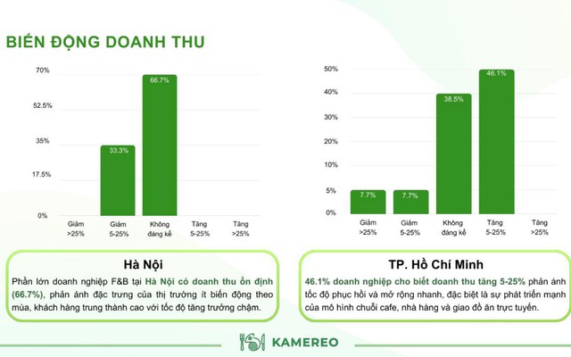 Theo dữ liệu từ hệ sinh thái Kamereo, tình hình kinh doanh của doanh nghiệp F&B trong Quý 3/2025 cho thấy hai sắc thái khác biệt tại hai đầu tàu kinh tế lớn nhất cả nước.