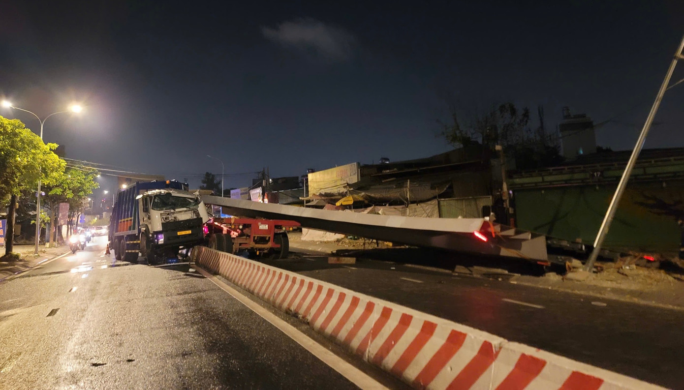 Cú đâm mạnh khiến tấm thép trên rơ-moóc trượt khỏi vị trí, rơi xuống đè bẹp cabin xe rác. Tài xế xe rác được đưa đi cấp cứu nhưng không qua khỏi do thương tích nặng.