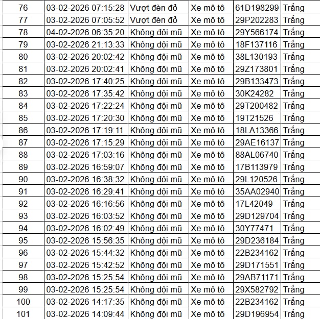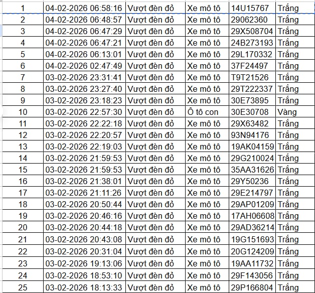 Mới đây, Cục Cảnh sát Giao thông đã công khai danh sách 129 trường hợp xe mô tô và xe ô tô vi phạm trật tự, an toàn giao thông, được phát hiện qua hệ thống camera AI.