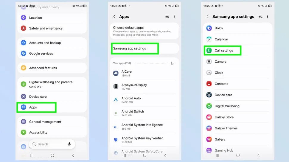 Bước đầu tiên, bạn hãy truy cập vào menu Cài đặt (Settings) , sau đó tìm đến mục Ứng dụng="" (apps)=""> Ứng dụng Samsung (Samsung Apps) > Cài đặt cuộc gọi (Call settings). Ứng>