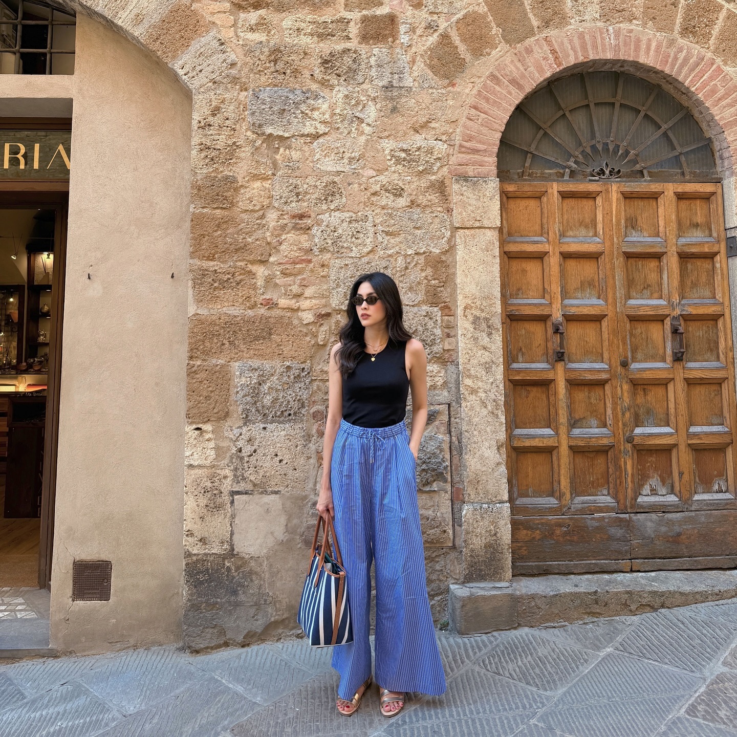 Trong những năm gần đây, quần ống rộng trở thành item được nhiều tín đồ thời trang yêu thích, và Tăng Thanh Hà cũng không ngoại lệ. Kiểu quần này mang lại cảm giác bay bổng, nhẹ nhàng nhưng vẫn đủ chỉn chu cho những bức ảnh check-in tại resort hay khách sạn sang trọng.