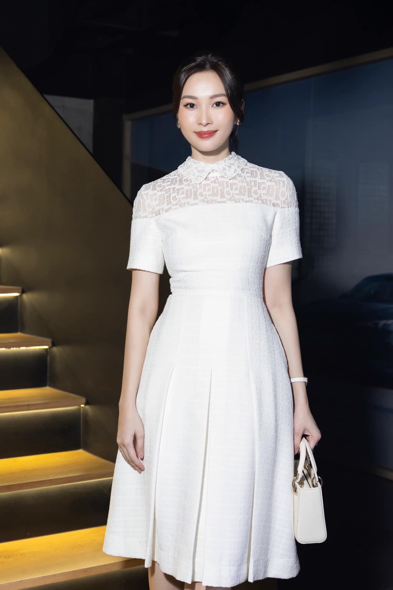 Phong cách thời trang của Đặng Thu Thảo luôn ghi điểm nhờ sự tối giản nhưng vẫn toát lên nét sang trọng, thanh lịch rất riêng. Nàng Hậu chọn diện thiết kế đầm ôm dáng, gam xanh dương dịu mắt giúp tôn da hiệu quả. Điểm nhấn nằm ở chi tiết hoa được xử lý tinh tế, tạo cảm giác mềm mại và nữ tính. Tổng thể chiếc váy không chỉ tôn đường cong cơ thể mà còn mang đến vẻ ngoài rạng rỡ, yêu kiều nhưng vẫn rất trang nhã.