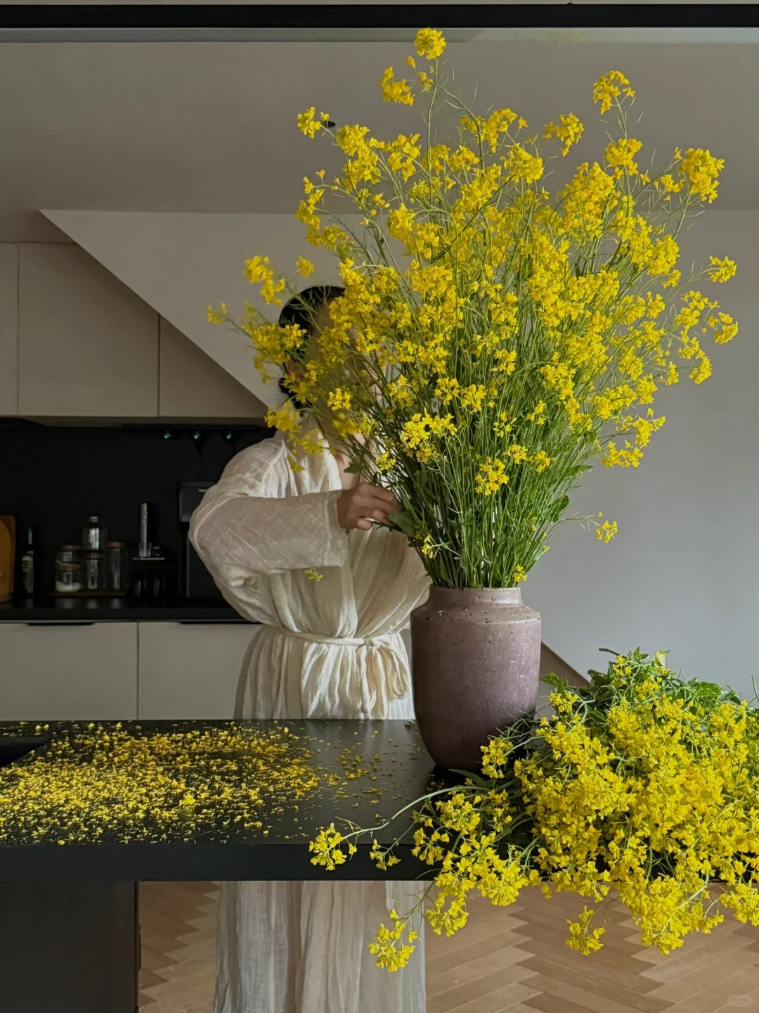 Mùa xuân không chỉ là sự thay đổi của đất trời, mà còn là khoảnh khắc ta muốn F5 lại chính ngôi nhà và tâm hồn mình. Có một câu nói đùa rất dễ thương dạo gần đây trên mạng xã hội thế này: "Trồng hoa cải, gặt tài hoa". Trong tiếng Trung, hoa cải dầu phát âm gần giống với từ "hữu tài hoa" (nghĩa là người có tài năng, khí chất). Vậy nên, kế hoạch đầu năm của rất nhiều chị em là tự thưởng cho mình một bình hoa cải vàng rực rỡ, vừa để thắp sáng góc phòng, vừa như một lời "xin vía" phong thủy nho nhỏ, mong một năm mới bản thân sẽ trau dồi thêm nhiều kỹ năng, công việc hanh thông và tài năng luôn tỏa sáng.