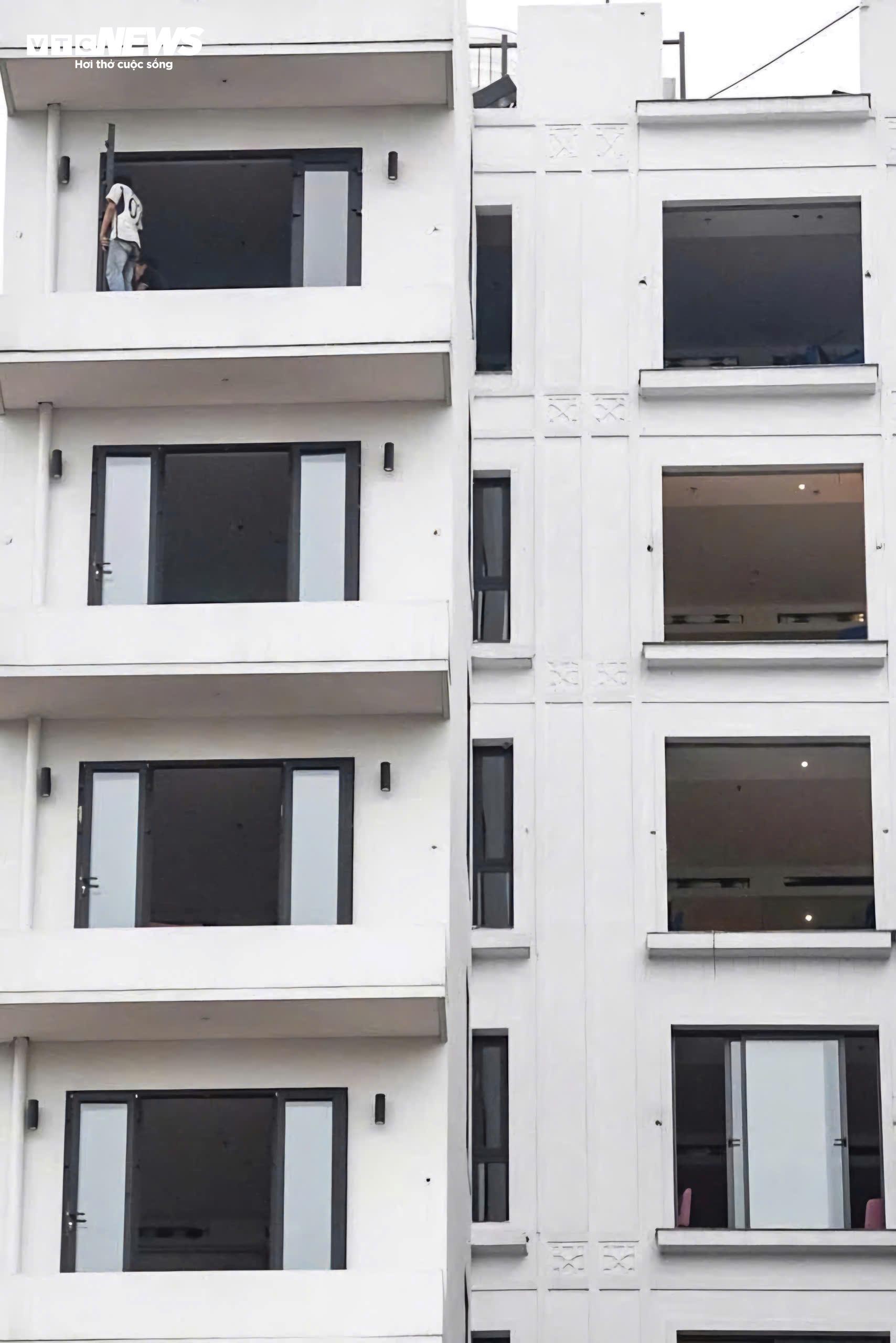 Do khách sạn đi vào hoạt động chưa lâu, nhiều thiết bị vẫn còn giá trị sử dụng nên bên cạnh lực lượng thi công còn có các nhóm thợ chuyên nghiệp đến tháo dỡ, thu hồi cục nóng điều hòa, bình nóng lạnh, thiết bị điện… để vận chuyển đi nơi khác. Việc thu gom, phân loại được thực hiện song song với quá trình dọn dẹp, góp phần tận dụng lại tài sản và hạn chế lãng phí.