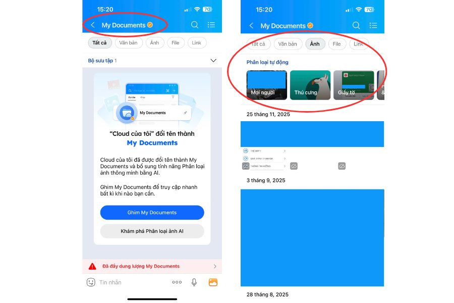 Theo thông báo, tính năng lưu trữ “Cloud của tôi” đã được đổi tên thành “My Documents”. Không đơn thuần là chỉnh sửa tên gọi, đây tiếp tục là nơi người dùng có thể lưu trữ hình ảnh, tệp tin, tài liệu quan trọng như một cuộc trò chuyện cá nhân. Phần dữ liệu này được đồng bộ hóa theo tài khoản, cho phép truy cập lại trên thiết bị mới khi đăng nhập, giúp hạn chế rủi ro thất lạc thông tin.