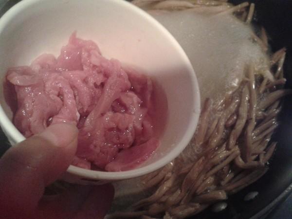 Bước 2: Cho lượng nước vừa đủ vào nồi, thêm các lát gừng và hoa hiên đã chuẩn bị, đun sôi trên lửa lớn, sau đó giảm lửa nhỏ và ninh trong 10 phút. Cho các miếng thịt đã ướp vào nồi, dùng đũa tách rời chúng ra và nấu trong 3-5 phút cho đến khi thịt chín hẳn. Rắc hành lá thái nhỏ lên trên và nêm thêm chút muối cho vừa ăn.