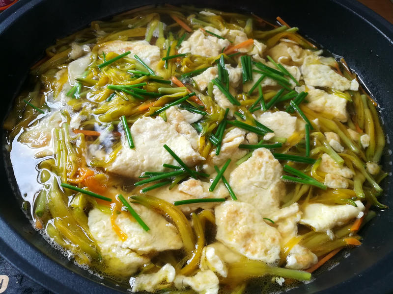 Công thức món canh chay này rất thanh mát và nhẹ nhàng. Hoa hiên, giá đỗ, mộc nhĩ và đậu phụ đều có tác dụng "thanh lọc và thông tắc", giúp loại bỏ sự ứ trệ do ăn quá nhiều đồ ăn nhiều dầu mỡ vào cuối mùa xuân, đồng thời làm sạch đường ruột. Khi dạ dày được làm đầy, toàn thân sẽ cảm thấy thư thái.