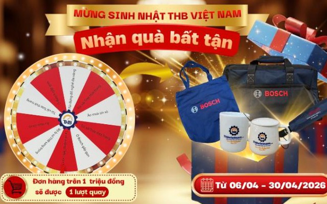 Nhân dịp kỷ niệm 14 năm ngày thành lập, THB Việt Nam xin gửi lời cảm ơn chân thành tới Quý khách hàng đã luôn tin tưởng và đồng hành trong suốt chặng đường vừa qua bằng chương trình khuyến mãi đặc biệt. Theo đó, khi mua sắm trực tiếp tại cửa hàng với hóa đơn từ 1.000.000 VNĐ trở lên, quý khách sẽ nhận ngay 1 lượt quay thưởng và có cơ hội trúng những phần quà hấp dẫn như: Bộ ly, cốc THB, Túi đựng đồ nghề Bosch, Ô Bosch, Áo mưa Bosch, Túi vải thời trang