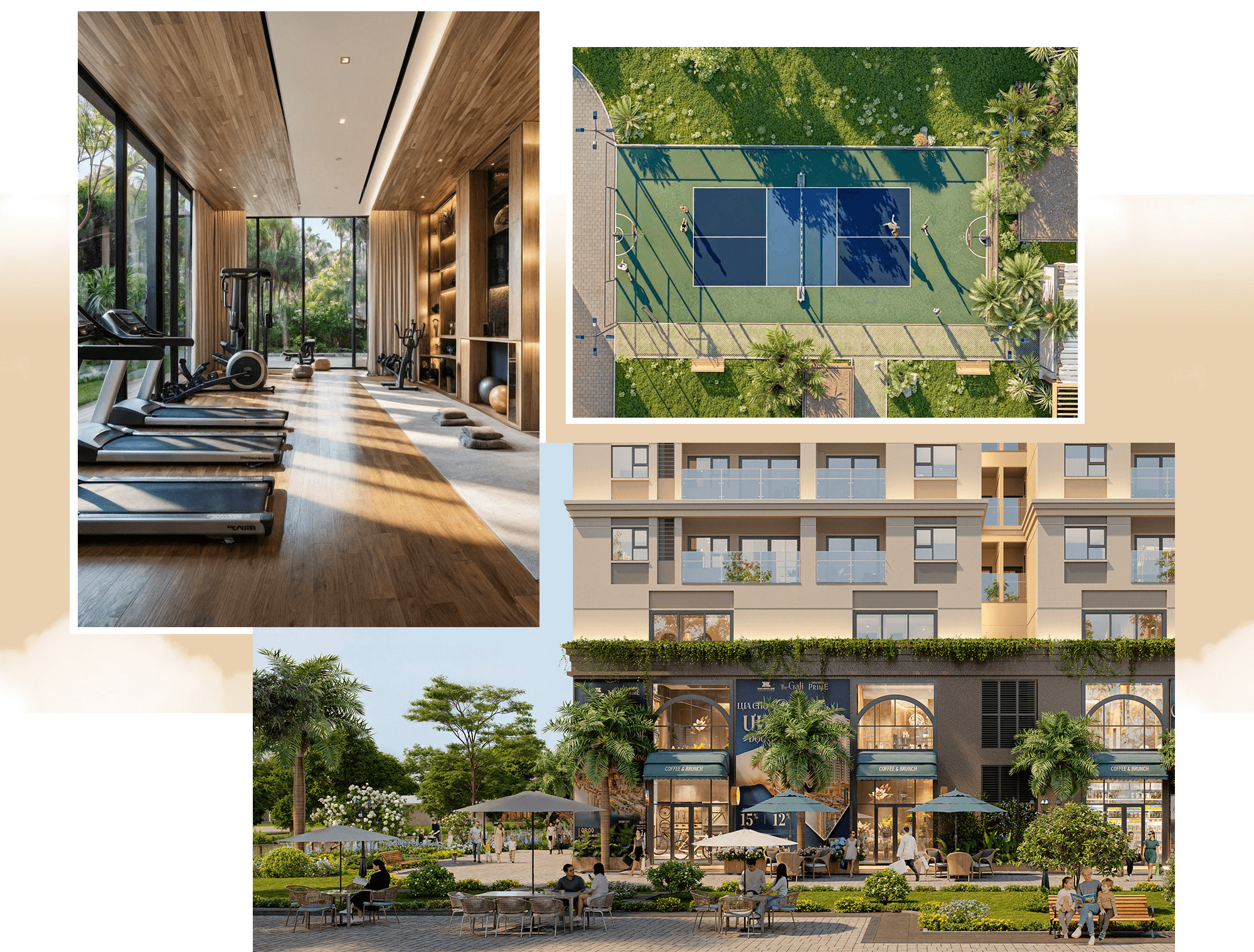 Khi rèn luyện sức khoẻ song hành cùng những trải nghiệm đỉnh cao là những phút giây thăng hoa quên lối về với những người bạn tâm giao cùng gu sống lành mạnh, cân bằng và tích cực. Thoả sức trải nghiệm tại sân chơi thể thao đa năng với các bộ môn thể thao: tennis, cầu lông, bóng rổ và PickleBall,… hay tự do trải nghiệm phòng gym với trang thiết bị hiện đại cùng dịch vụ đẳng cấp.