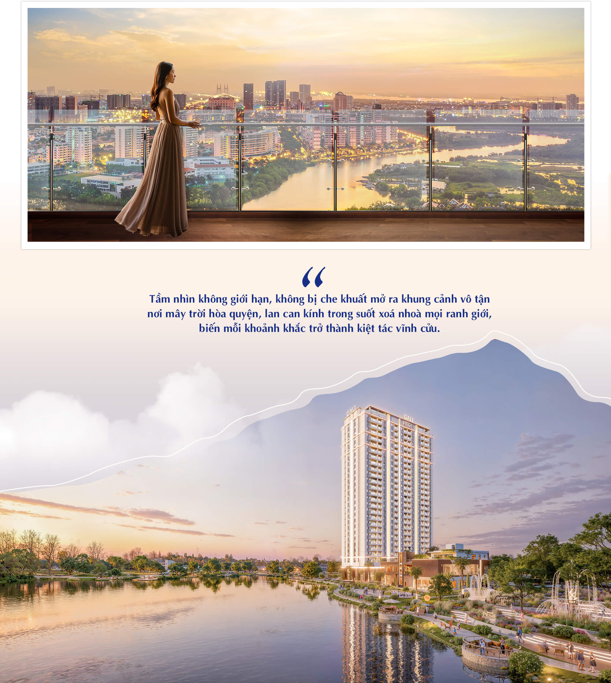 Từng căn hộ là một "gallery sống động" được "may đo" hoàn hảo đến từng chi tiết bởi đặc quyền hiếm có: một mặt ven sông một mặt view sông mang lại trải nghiệm "triệu đô". Để kiến tạo nên những góc nhìn đẹp nhất, hoàn mỹ nhất là cả một sự tính toán tỉ mỉ và tâm huyết của chủ đầu tư đã thổi hồn vào không gian sống bằng tư duy thẩm mỹ, tinh tế và sự thấu hiểu khách hàng sâu sắc.