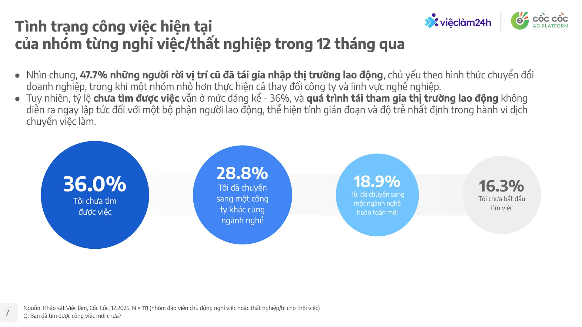 Trong bối cảnh đó, dữ liệu và phân tích hành vi người dùng ngày càng đóng vai trò quan trọng trọng. Báo cáo Thị trường Việc làm Việt Nam do Cốc Cốc Research thực hiện, với sự phối hợp ứng dụng dữ liệu từ Việc Làm 24h, mang đến góc nhìn đa chiều và sát thực tiễn về thị trường việc làm Việt Nam trong giai đoạn chuyển đổi hiện nay.