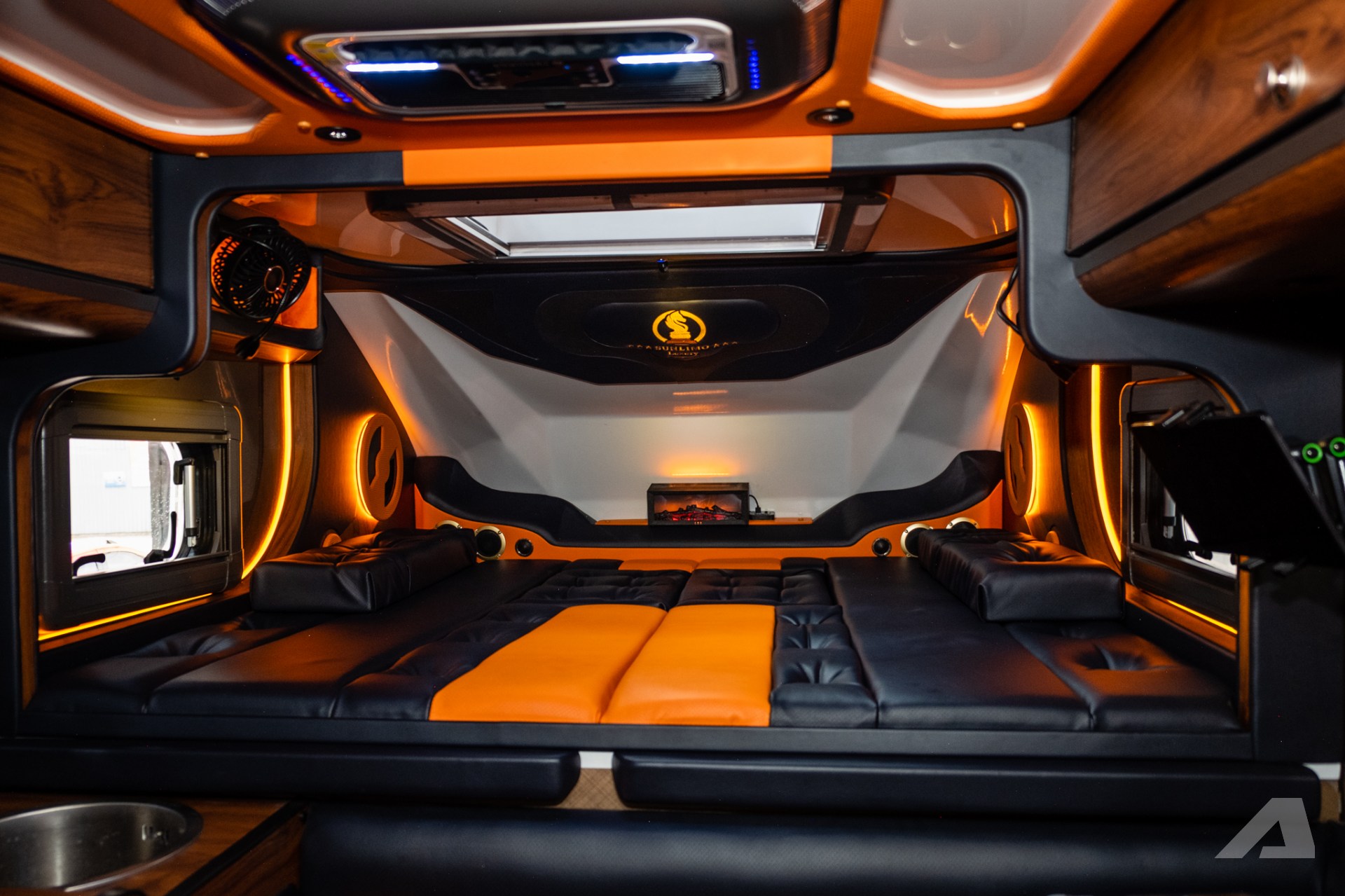 Khoang sinh hoạt của SunLimo F18 Luxury được bố trí các khu vực chức năng gồm không gian ngủ, sinh hoạt, bếp và phòng tắm.