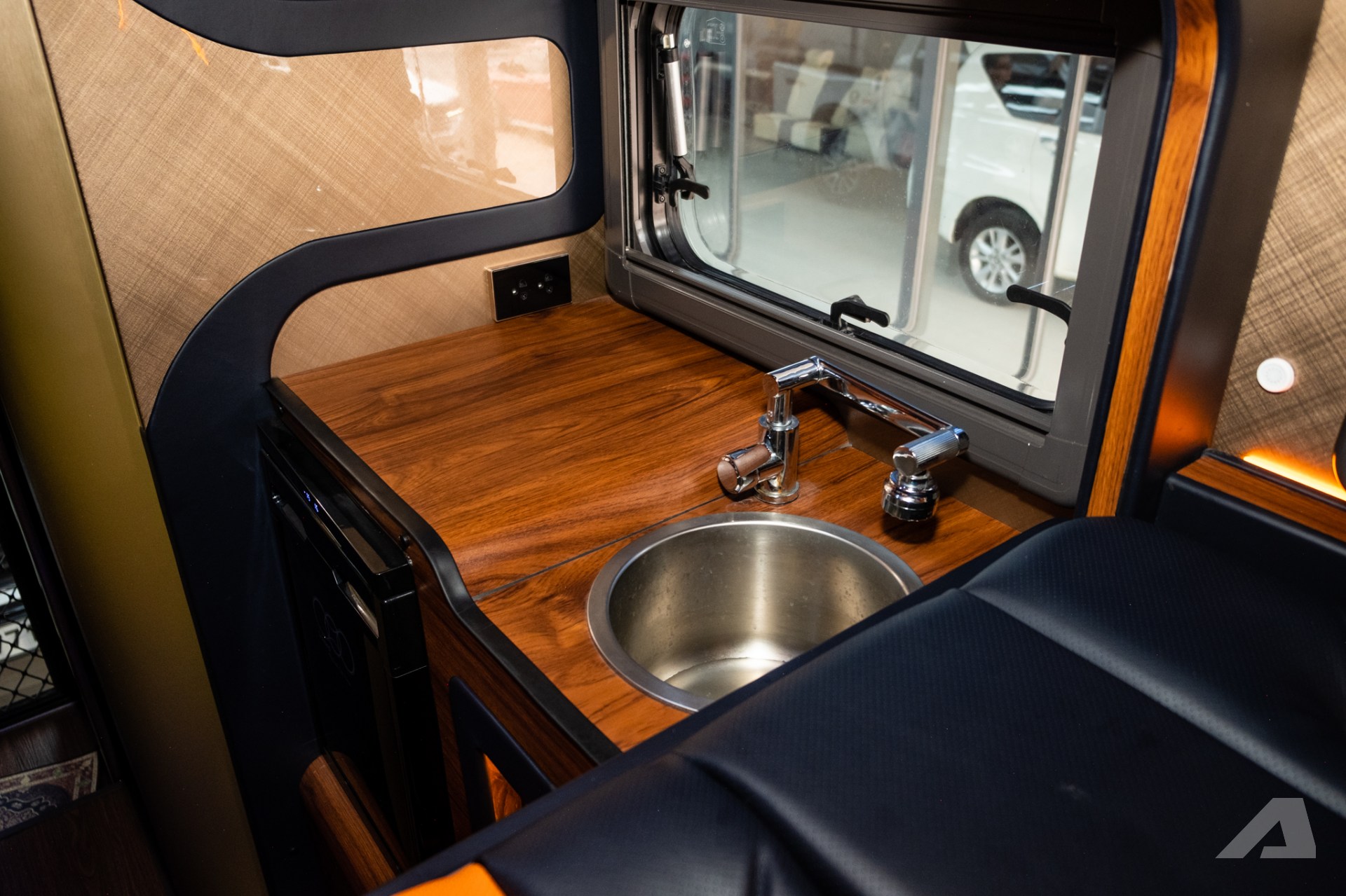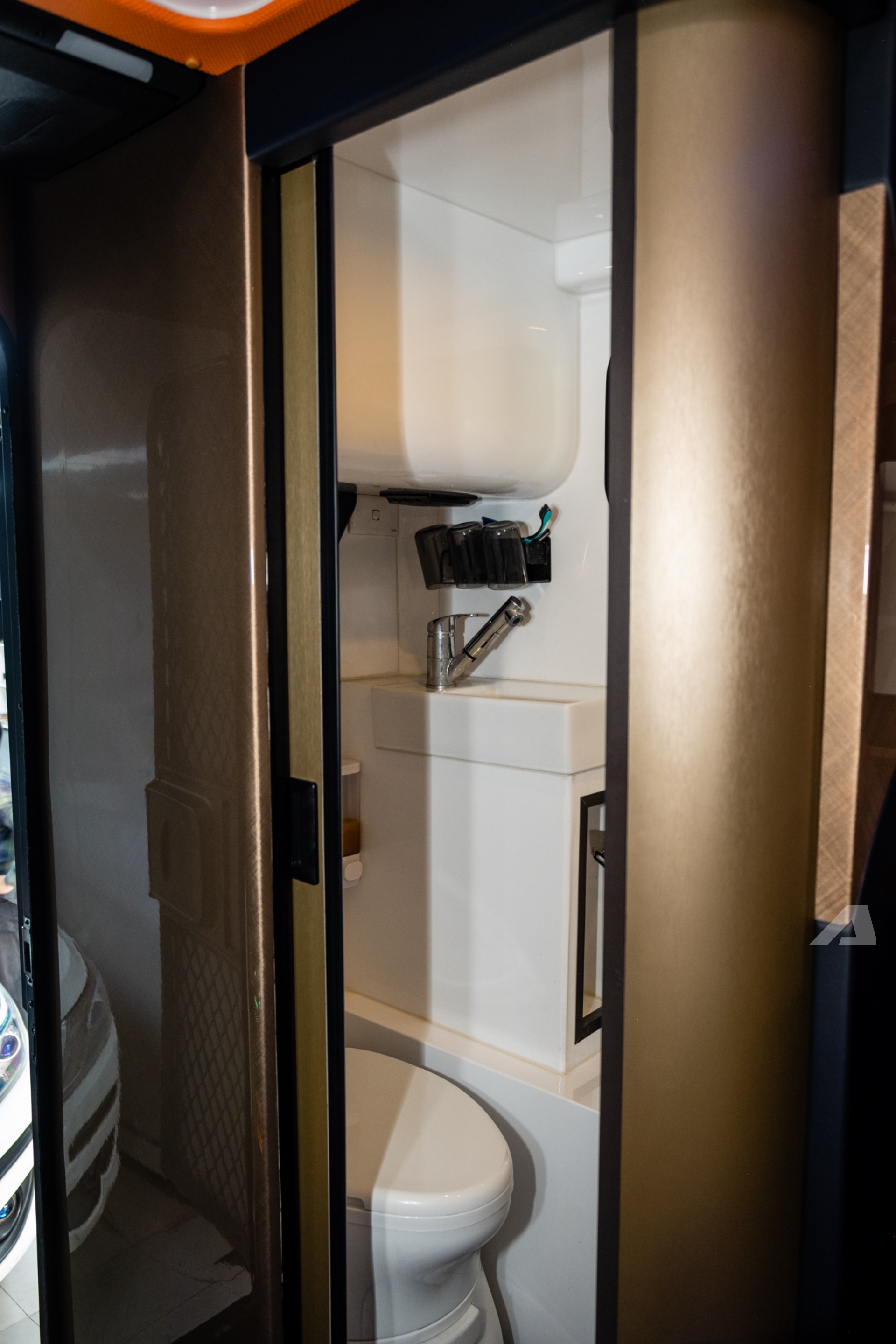 Phòng tắm bố trí khép kín, gồm vòi hoa sen, lavabo và toilet. Phiên bản Luxury có tùy chọn toilet điện cố định. Ngoài ra, xe có thể được trang bị bình nước nóng 24 V và hệ thống lọc nước sinh hoạt, cho phép lọc nước từ ao, hồ, sông, suối phục vụ tắm giặt và sinh hoạt.
