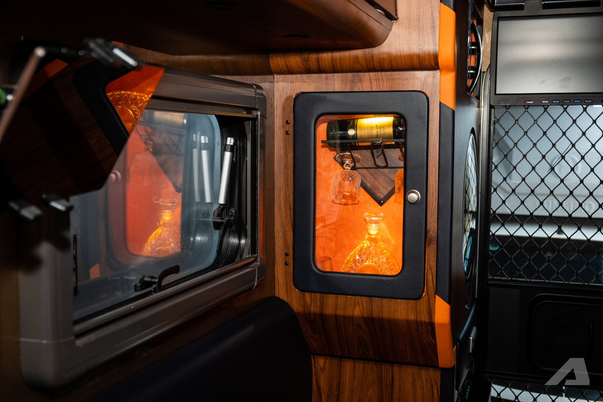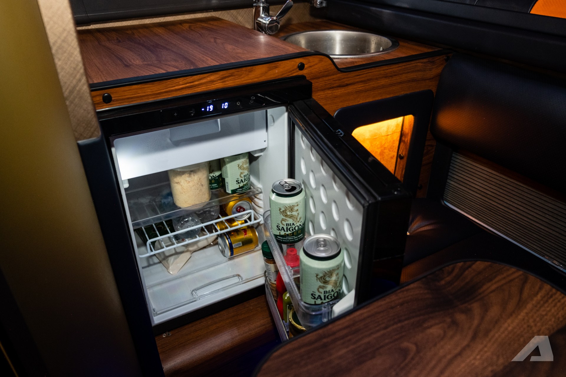 Bên trong thậm chí có cả tủ rượu và "quầy bar" với bàn ghế để "chill". Ảnh: Quốc Minh