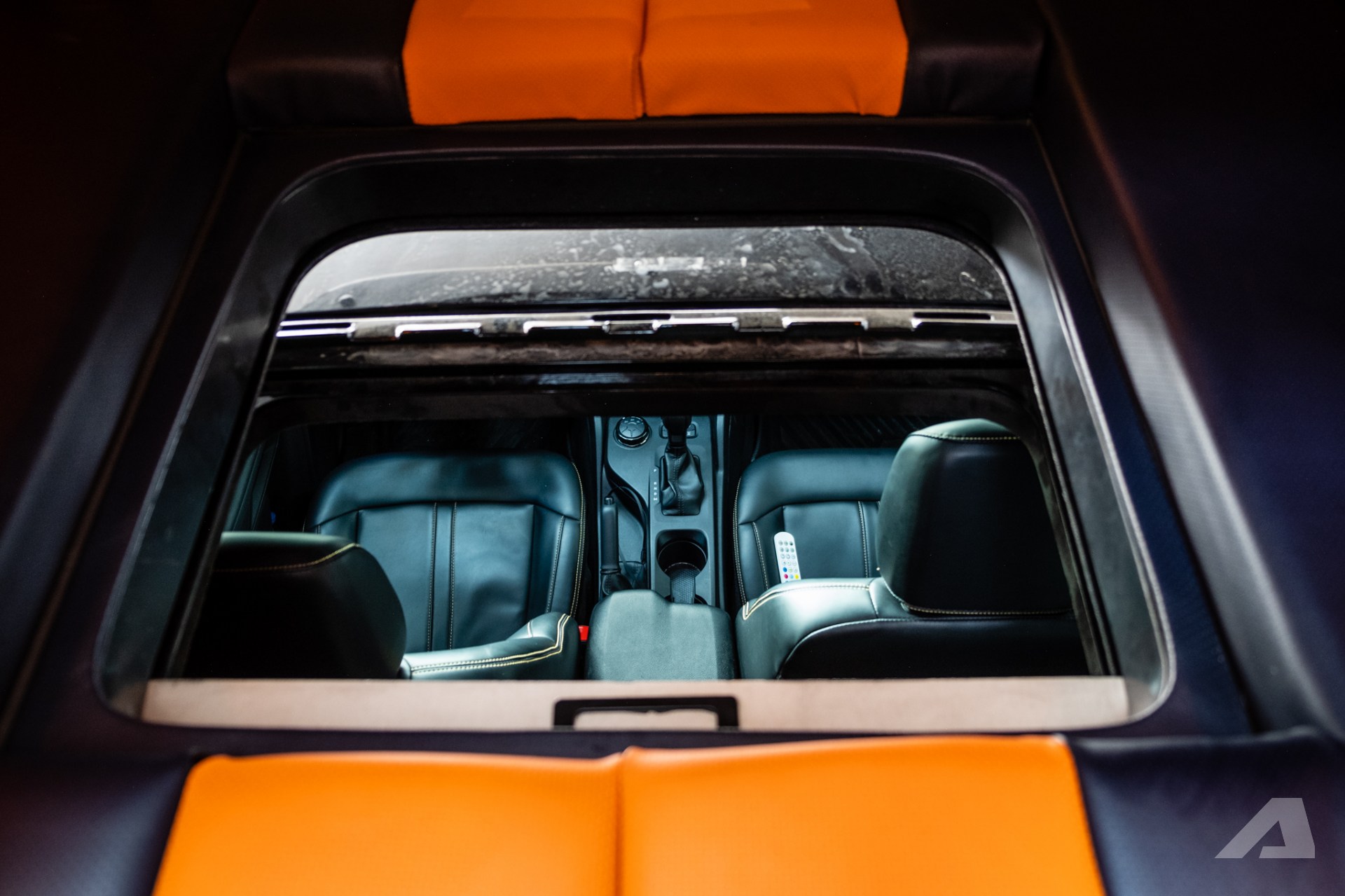 Chiếc Ranger thậm chỉ được độ cửa sổ trời để có thể đi thông vào trong nhà mini. Ảnh: Quốc Minh