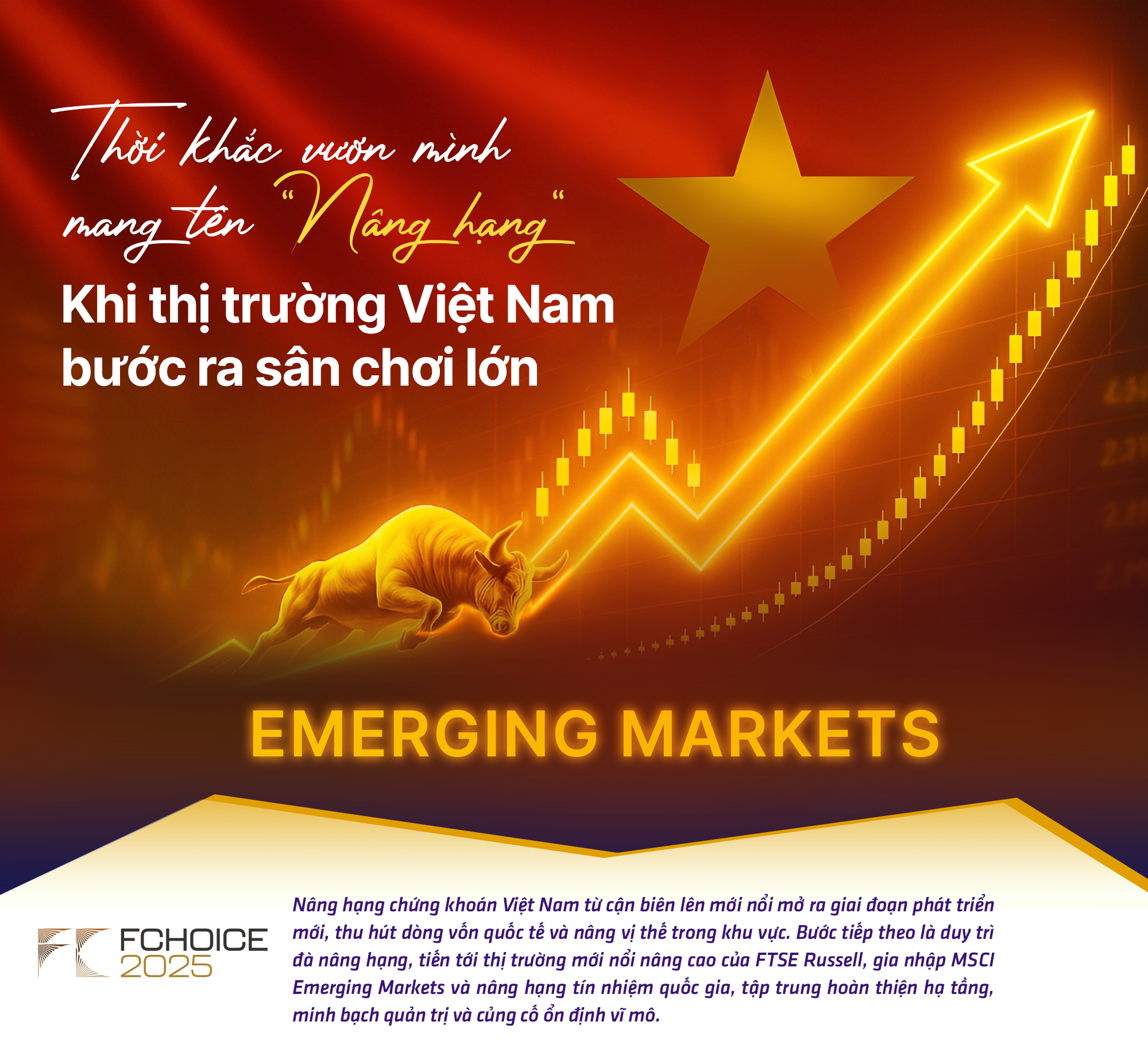 Nâng hạng lên nhóm thị trường mới nổi thứ cấp chỉ là điểm khởi đầu. Từ đây, thị trường vốn và chứng khoán Việt Nam sẽ bước vào giai đoạn chuyển đổi về chất. Chủ tịch UBCKNN Vũ Thị Chân Phương từng nhấn mạnh, điều quan trọng không chỉ là được nâng hạng mà là củng cố niềm tin nhà đầu tư và xây dựng một thị trường minh bạch, hiện đại, đủ năng lực hội nhập với các chuẩn mực quốc tế.