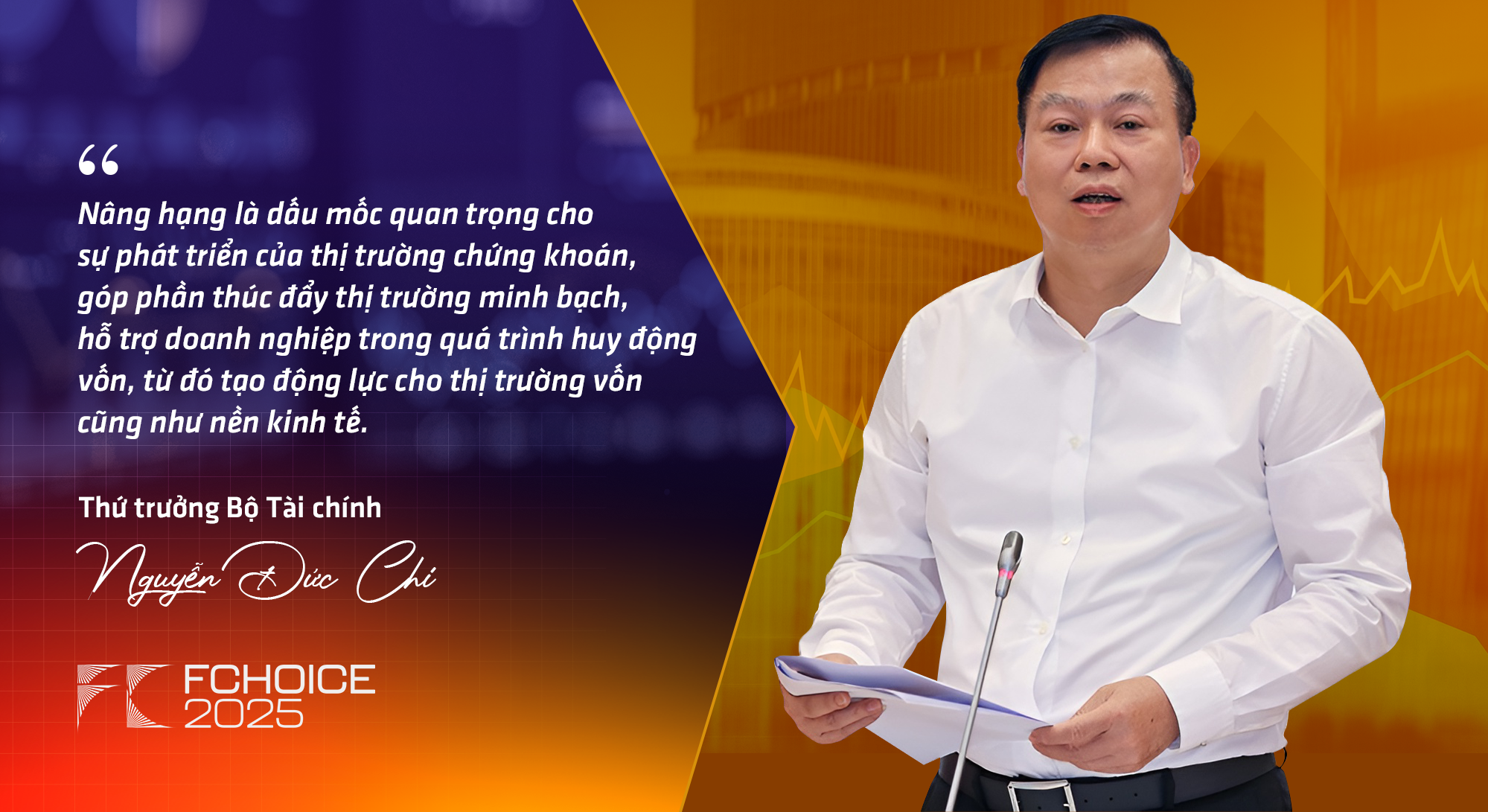 Thứ trưởng Bộ Tài chính Nguyễn Đức Chi cũng khẳng định việc nâng hạng thị trường là bước khởi đầu, sau đó thị trường còn phải duy trì vị thế và tiếp tục hướng đến những bước cao hơn trong tương lai. "Đây là dấu mốc quan trọng cho sự phát triển của thị trường chứng khoán sớm minh bạch hơn nữa để hỗ trợ doanh nghiệp trong quá trình huy động vốn và từ đó thúc đẩy thị trường vốn và nền kinh tế phát triển", Thứ trưởng Bộ Tài chính nhận định.