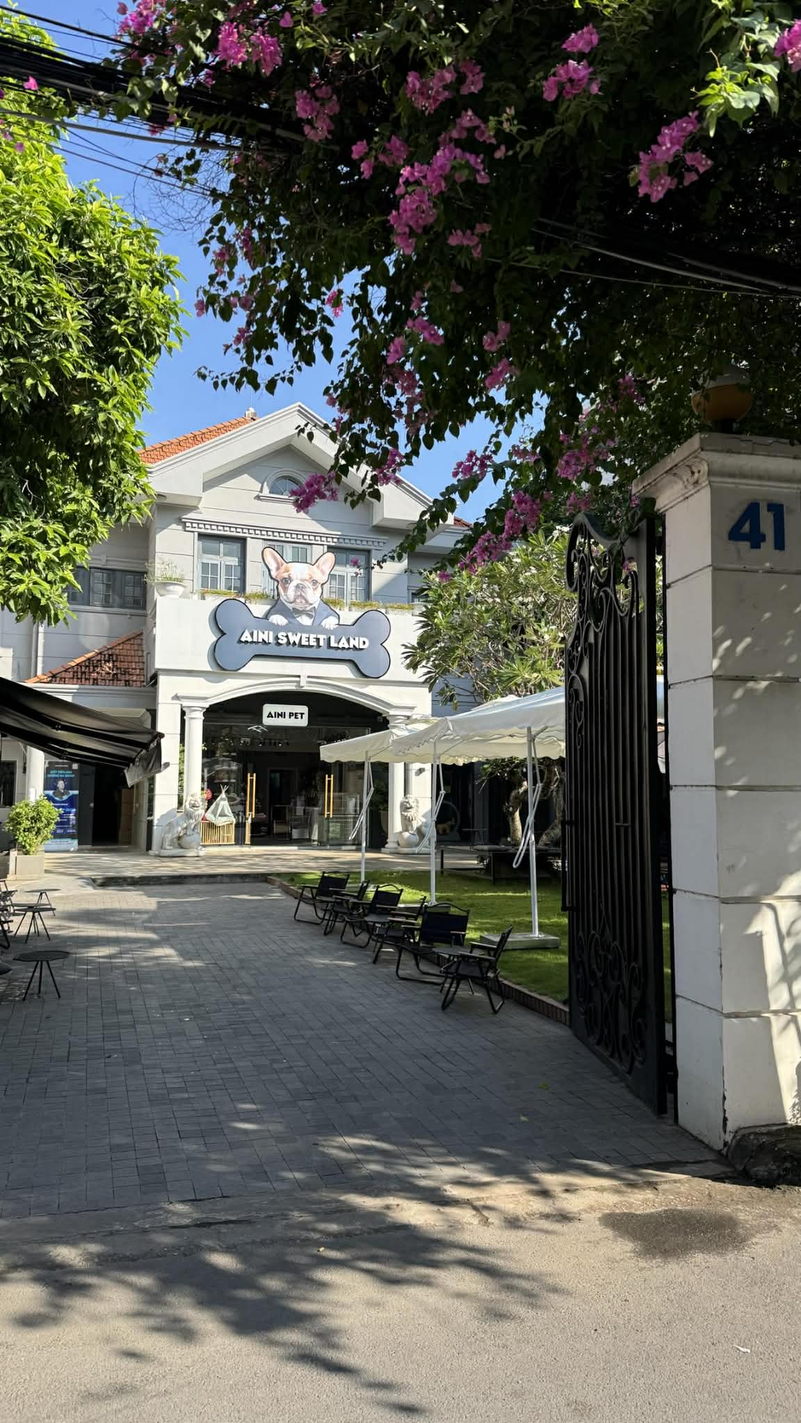 Khuôn viên resort rộng rãi, có bể bơi cho thú cưng
