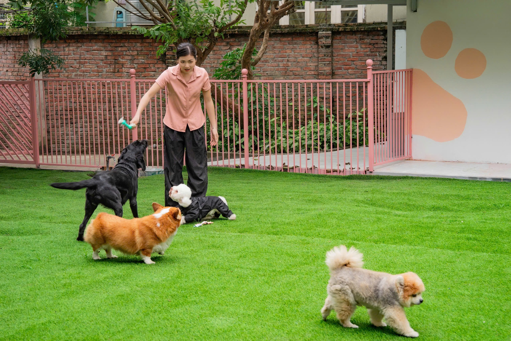 Khu vực sân chơi rộng 200m, Thảo Nhi mong muốn tạo không gian vui chơi, hoạt động thoải mái cho thú cưng
