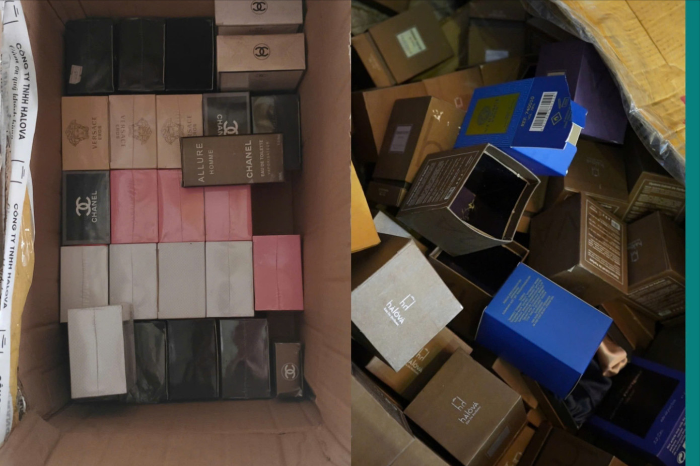 Làm việc với cơ quan điều tra, H. và T. khai nhận, nhằm che giấu hành vi phạm pháp, năm 2018 H. thành lập Công ty TNHH HALOVA, đăng ký ngành nghề sản xuất nước hoa. Từ năm 2020, hai vợ chồng H. tổ chức sản xuất song song nước hoa mang nhãn hiệu công ty và nước hoa giả mang các nhãn hiệu nổi tiếng thế giới để đưa ra thị trường tiêu thụ, thu lợi bất chính.