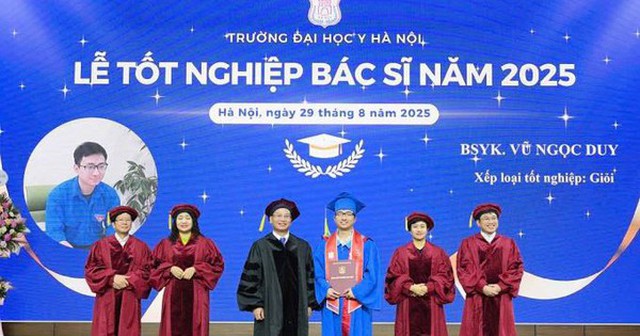 Khoảnh khắc tân bác sĩ nội trú hô vang: "Vũ Ngọc Duy, số thứ tự 1, chuyên ngành Sản phụ khoa, trường Đại học Y Hà Nội" khiến cả hội trường vỡ òa, vỗ tay chúc mừng "tinh hoa của tinh hoa". Bên ngoài hội trường, nhiều bạn bè đợi sẵn, ôm chầm chúc mừng thành tích tự hào của tân bác sĩ.