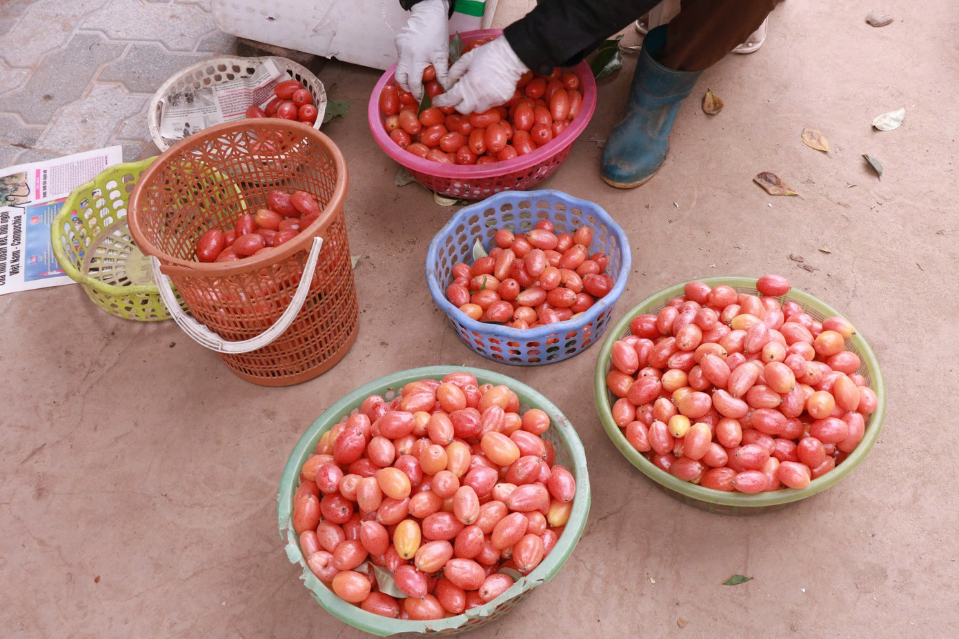 Nhót sau khi hái được phân ra thành nhiều loại.