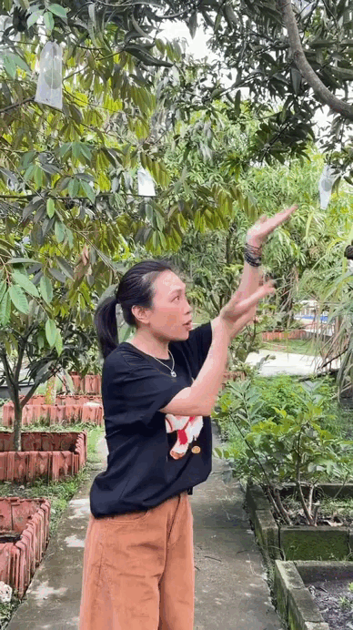 Trong khu vườn rộng lớn, Mỹ Tâm trồng nhiều giống xoài khác nhau, từ xoài trái to sai quả đến xoài Thái với vị ngọt giòn đặc trưng. Cô thích thú giới thiệu từng cây, có cây cho trái dày đặc đến mức “quả nhiều hơn lá”. Sự đa dạng và sum suê của vườn xoài không chỉ cho thấy sự chăm chút kỹ lưỡng mà còn phản ánh niềm vui giản dị của nữ ca sĩ với không gian sống xanh của mình.