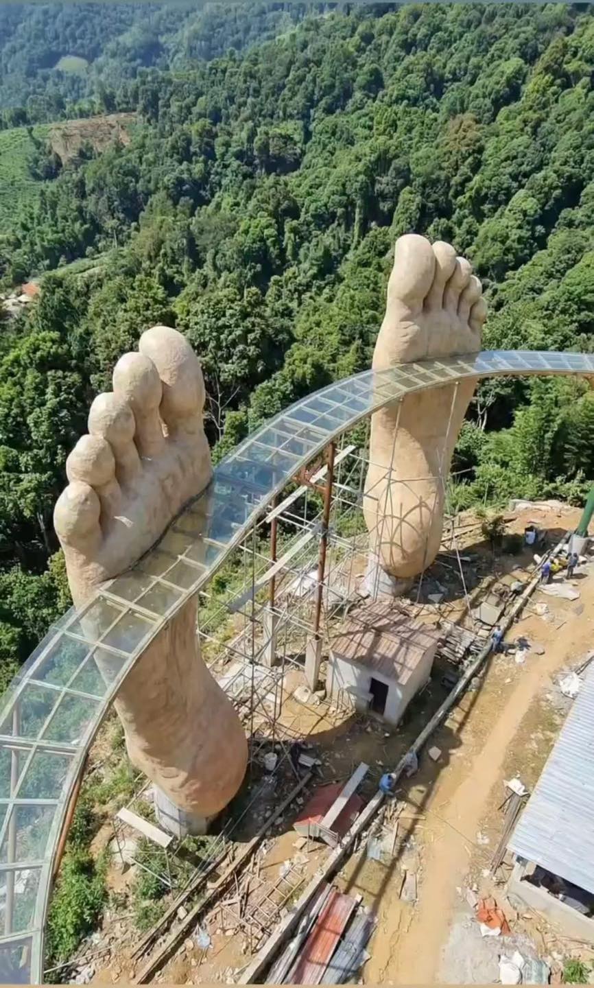 Những ngày vừa qua, cộng đồng mạng quốc tế và đặc biệt là người dùng mạng xã hội tại Việt Nam đang xôn xao trước hình ảnh một cây cầu kính có thiết kế vô cùng lạ mắt. Thay vì những trụ cầu bằng bê tông cốt thép truyền thống, công trình này được nâng đỡ bởi hai bàn chân khổng lồ mọc lên từ sườn núi và được gọi hài hước là Dirty Feet (Bàn Chân Thối).