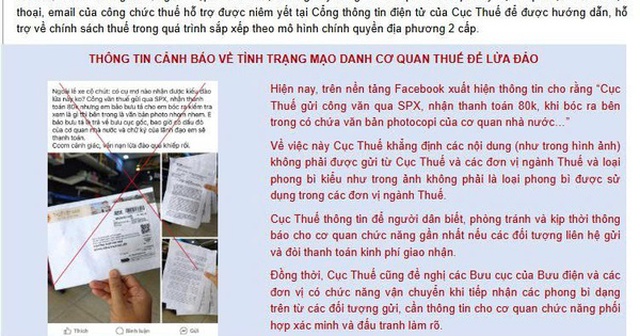Qua nền tảng Facebook, một số người dân phản ánh ngày 24-9 họ nhận được phong bì ghi tên người gửi là "Cục Thuế", kèm theo yêu cầu thanh toán 80.000 đồng. Tuy nhiên, khi mở ra, bên trong chỉ có văn bản photocopy của cơ quan thuế từ các năm trước.