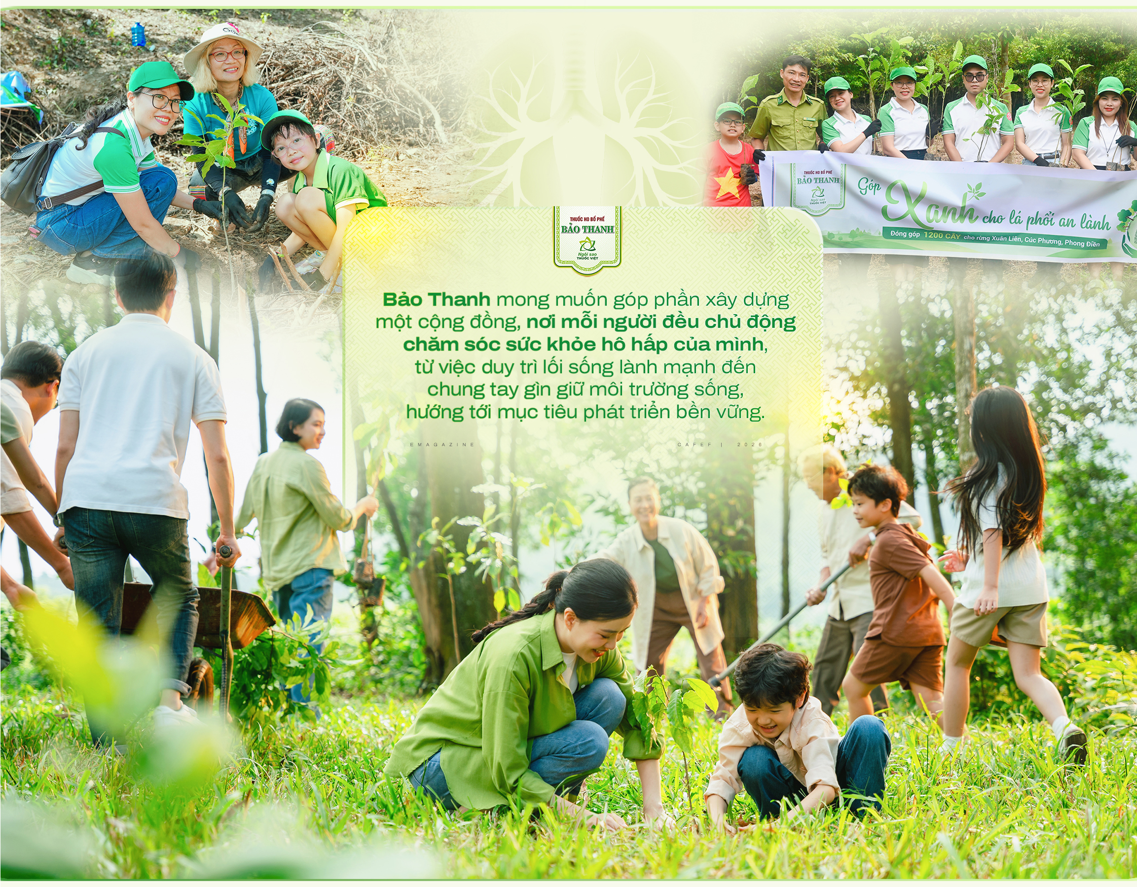 Từ định hướng đó, bên cạnh việc phát triển sản phẩm, thương hiệu Bảo Thanh triển khai dự án "Lá phổi xanh - Sống an lành" với nhiều sáng kiến cộng đồng nhằm lan tỏa ý thức bảo vệ hệ hô hấp một cách toàn diện và bền vững.