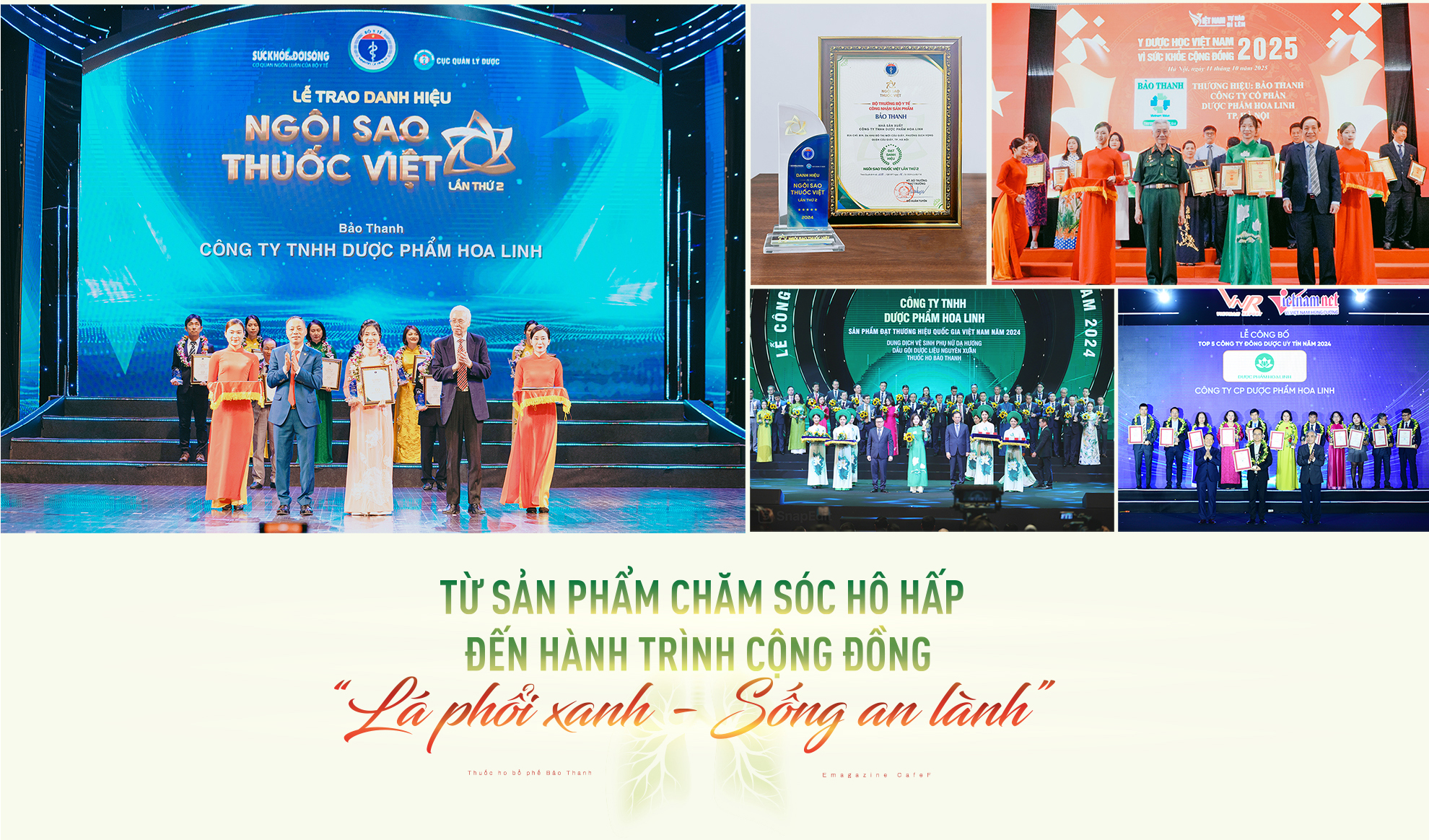Sau 20 năm phát triển, Thuốc ho bổ phế Bảo Thanh đã 2 lần liên tiếp được vinh danh "Ngôi sao thuốc Việt" do Bộ Y tế trao tặng. Bảo Thanh là một trong ba sản phẩm của Dược phẩm Hoa Linh đạt thương hiệu Quốc gia năm 2024.