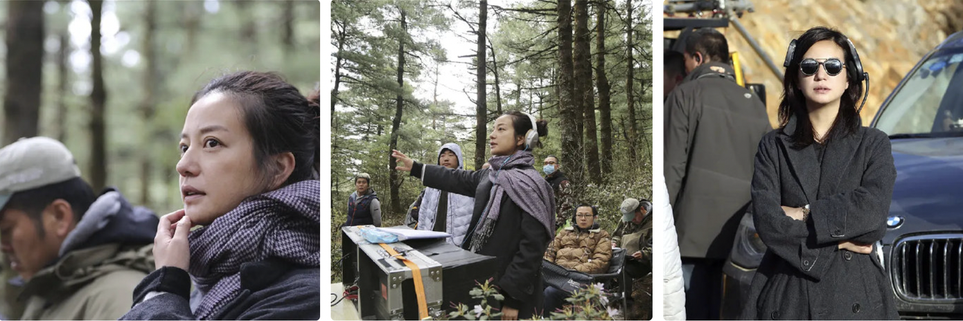 Triệu Vy trong vai trò đạo diễn trên phim trường bộ phim Không có tình yêu khác.