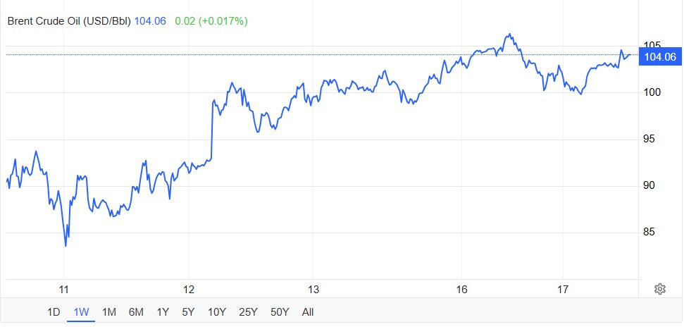 Diễn biến giá dầu Brent trong 1 tuần qua. Nguồn: Trading Economics.