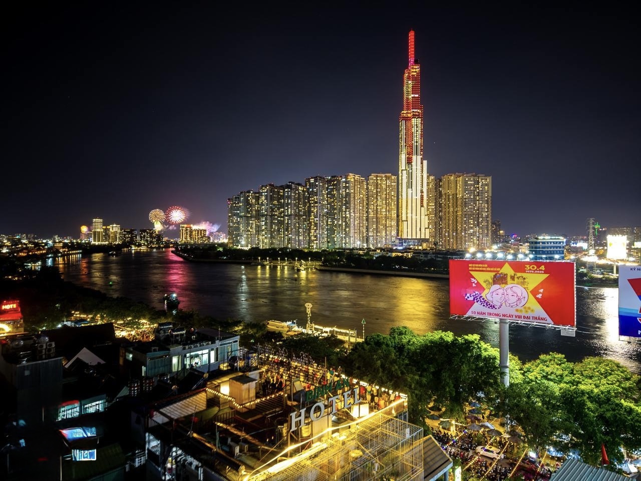 Với điểm bắn tầm cao, khu vực ven sông Sài Gòn tiếp tục là lựa chọn lý tưởng để theo dõi trọn vẹn màn trình diễn ánh sáng. Công viên Bến Bạch Đằng được xem là vị trí có góc nhìn trực diện, trong khi Công viên bờ sông Thủ Thiêm mang lại không gian thoáng đãng, ít bị che khuất, phù hợp cho cả việc ngắm cảnh lẫn chụp ảnh. Ngoài ra, Cầu Thủ Thiêm hay các tòa nhà cao tầng, quán cà phê rooftop tại khu vực trung tâm cũng là những điểm được nhiều người lựa chọn nhờ tầm nhìn bao quát toàn cảnh thành phố.