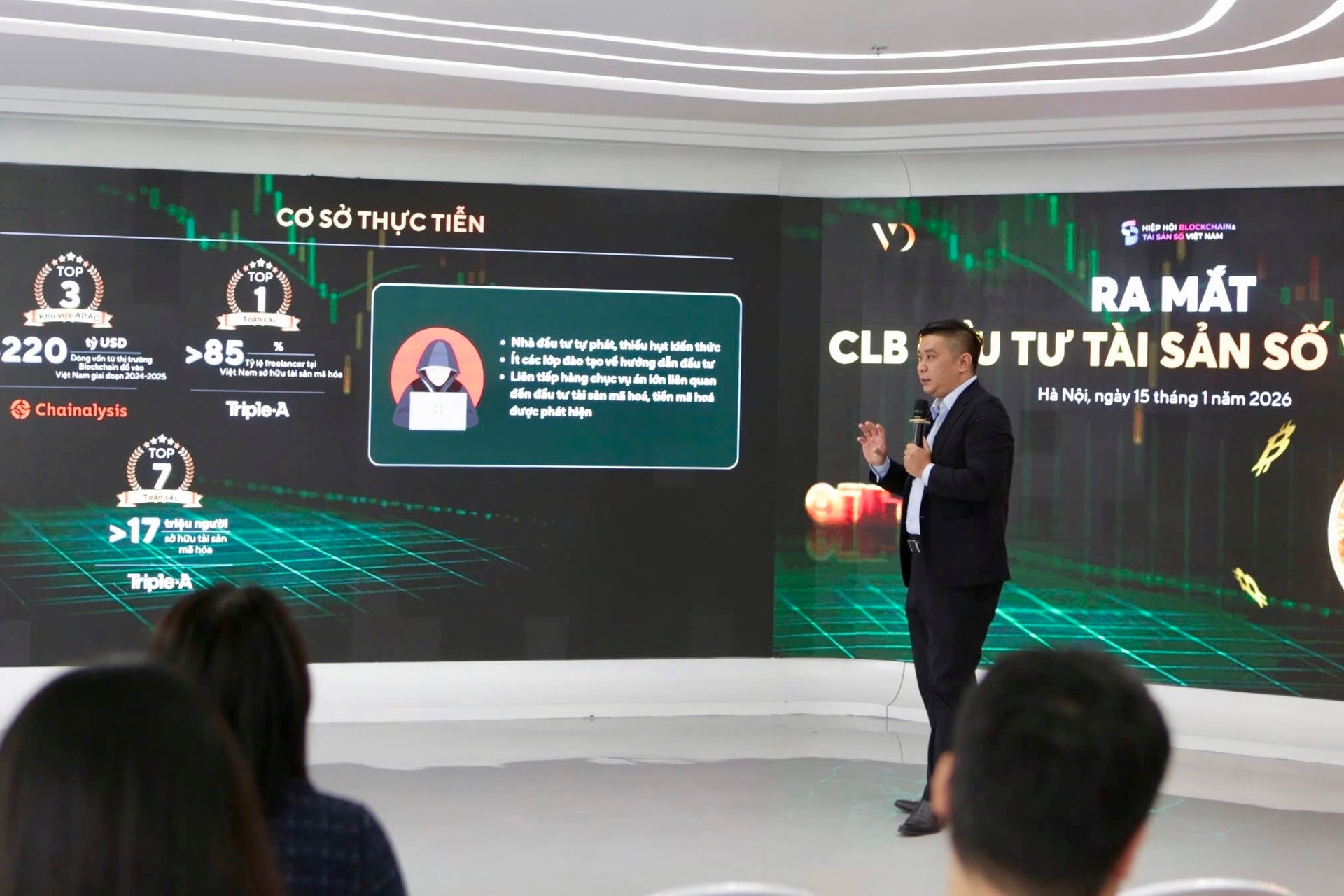 Phát biểu tại sự kiện, ông Phan Đức Trung, Chủ tịch VBA, Chủ tịch Công ty 1Matrix, bối cảnh hiện tại đòi hỏi các nhà đầu tư phải nhanh chóng, chủ động nâng cao kiến thức để có thể tự bảo vệ mình trong một thị trường mới mẻ, hấp dẫn nhưng cũng nhiều rủi ro như tài sản mã hoá.