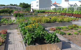 Các khu vườn trên mái không chỉ giúp giữ một lượng nước mưa đáng kể, tránh gây ngập úng đô thị mà còn chống nóng và thông gió cho toàn bộ ngôi nhà, hạn chế tiêu tốn điện năng.