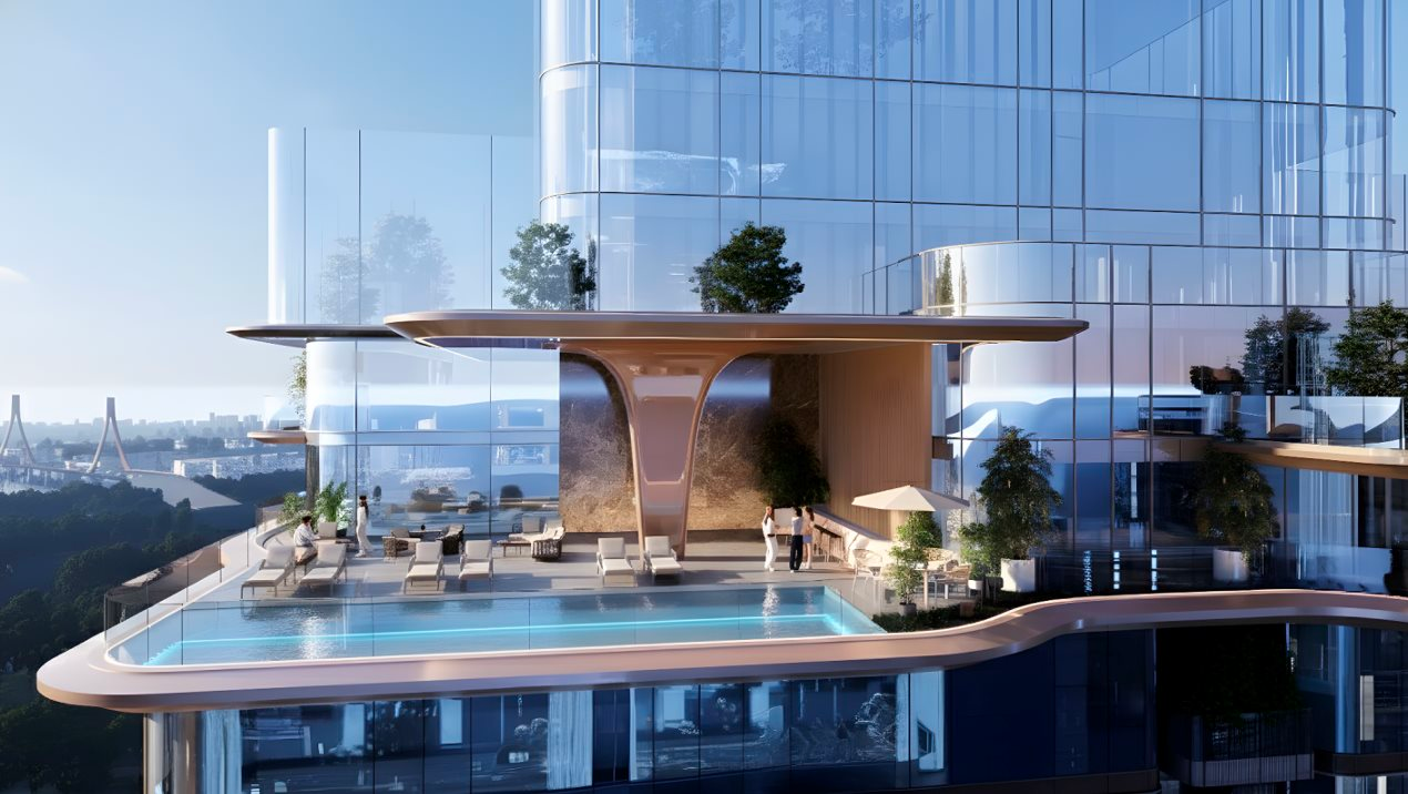 Tâm điểm của chuẩn mực này là bộ sưu tập dinh thự trên không xa xỉ, trong đó đỉnh cao là các căn VVIP thông tầng với diện tích lớn nhất lên tới hơn 1800 m², chiếm trọn một mặt sàn toà tháp. Không gian sống không còn giới hạn bởi cấu trúc căn hộ, mà mở ra như những “lãnh địa” riêng tư tuyệt đối giữa tầng không: bể bơi vô cực, vườn thượng uyển, nội thất “bespoke”, thang máy riêng vào tận căn hộ cùng tầm nhìn panorama trải dài từ Hồ Tây, sông Hồng đến toàn bộ lõi đô thị Tây Hồ Tây.
