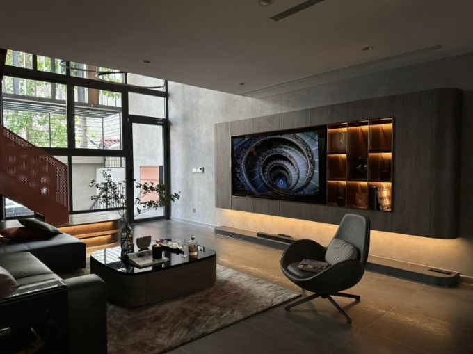 Ở tầng 4 của biệt thự, JustaTee lắp thêm TV để gia đình thuận tiện vừa ăn uống vừa có thể xem các chương trình yêu thích