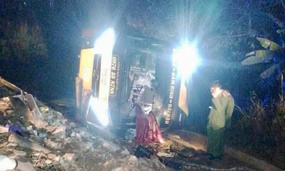 Xe lật nghiêng trong đêm (Ảnh: VOV)