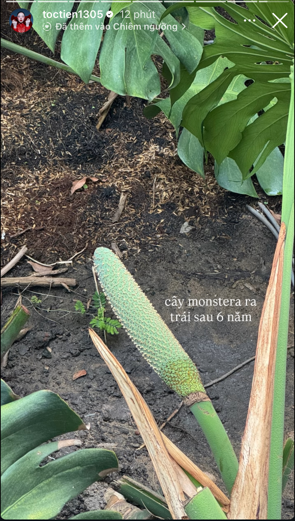 Cô khoe cây trồng suốt 6 năm đã ra hoa, trước đây Tóc Tiên rất thường xuyên cập nhật tình hình hoa cỏ bên trong sân vườn