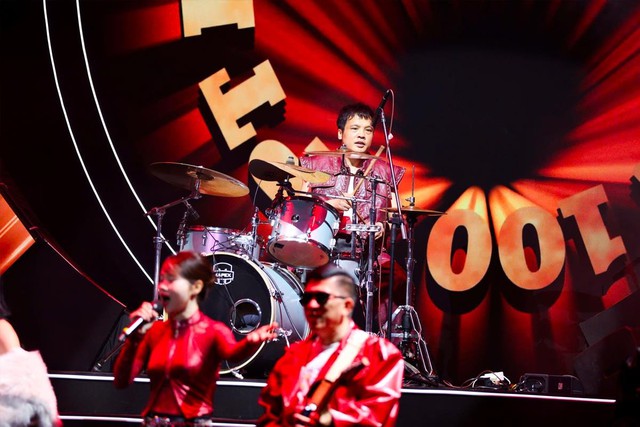 Dù chỉ có một buổi chiều để luyện tập "vào vai" tay trống, CEO FPT vẫn thể hiện phong thái tự tin, cuốn hút, khiến khán giả liên tưởng đến nghệ sĩ chuyên nghiệp.