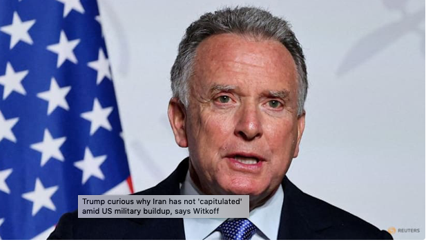 Tổng thống Mỹ Donald Trump thắc mắc vì sao Iran vẫn chưa “đầu hàng” và chấp nhận lùi bước với chương trình hạt nhân của họ, trong bối cảnh Washington tăng cường tập hợp sức mạnh quân sự tại Trung Đông, Đặc phái viên Steve Witkoff cho biết.